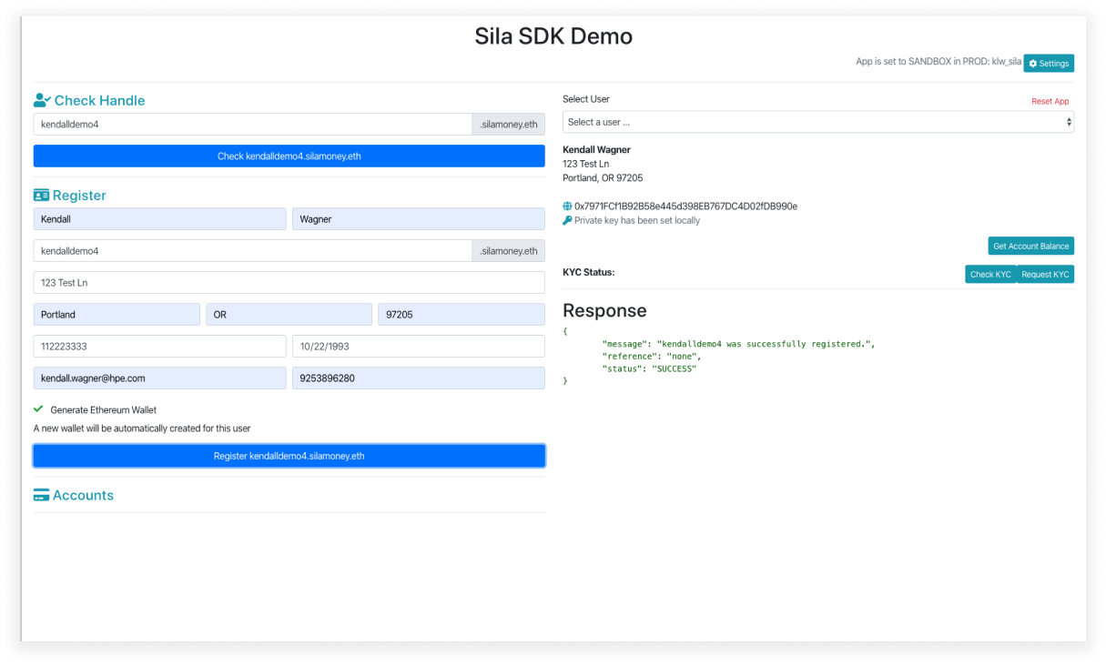 Transacting was the last step in the demo, where a user could issue Sila to their digital wallet, redeem Sila to their bank account, or transfer Sila to another digital wallet.
